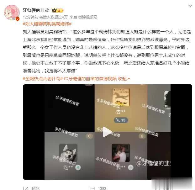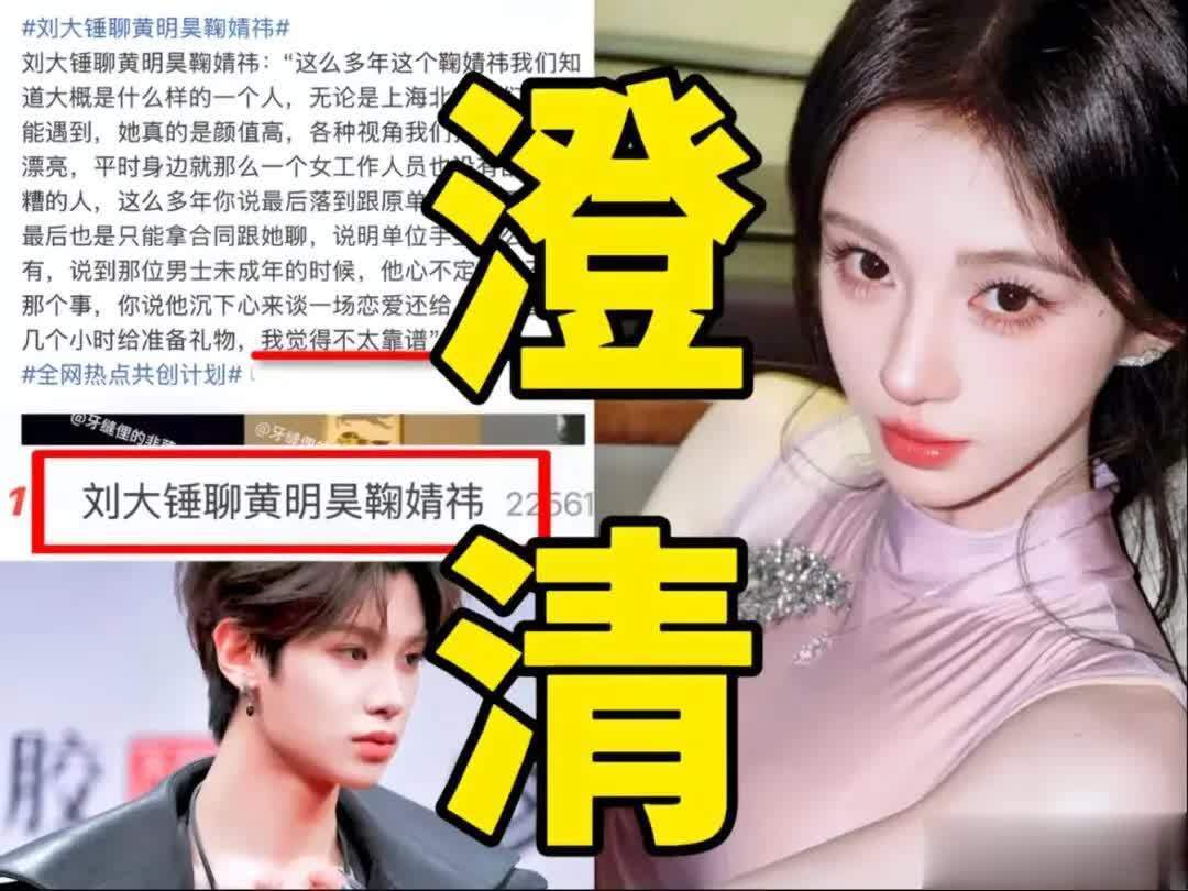 狗仔刘大锤在直播时公开否认了黄明昊与鞠婧祎的恋情传闻,通过对两人行为模式的剖析引发了舆论热潮。