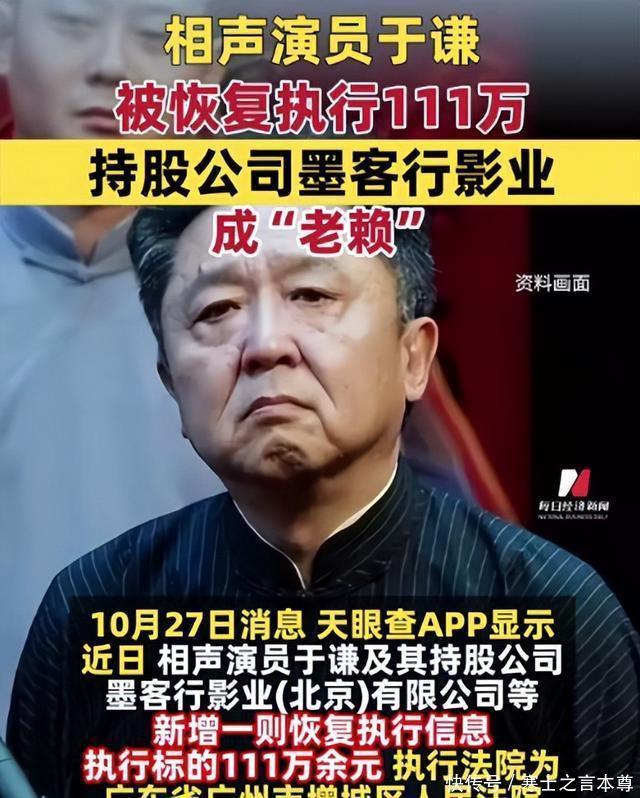 然而,一纸冰冷的法律文书打破了人们的观念,一笔111万元执行款让于谦的口碑一下跌落谷底 ,“被恢复执行”实在太刺眼,不少人也以为于谦成为了“老赖”,那个骑着名贵马匹、住在北京二环内千平四合院里的潇洒身影也蒙上了一层挥之不去的阴影。
