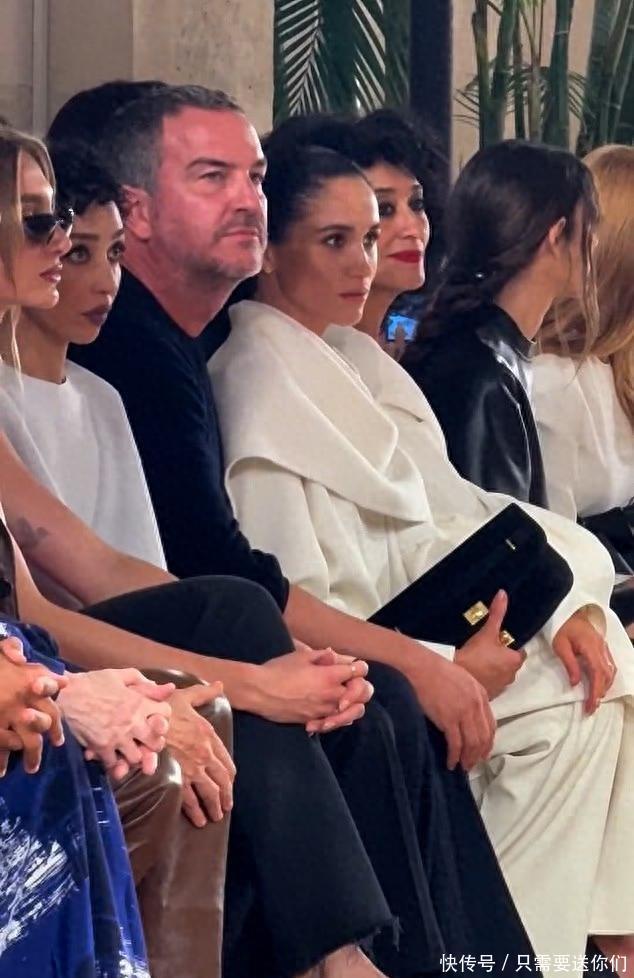 除了外貌,梅根的品行也成了众矢之的。前段时间,一段她在巴黎时装周看秀的视频火了。视频里,一位模特在T台上不慎摔倒,而镜头恰好捕捉到梅根脸上闪过一丝疑似“冷笑”的表情。这下可炸了锅,全网都在骂她“冷漠”“刻薄”“大不敬”,说她连最基本的同情心都没有。但真相往往藏在被剪掉的片段里。当时在现场的《Vogue》记者和好几位时尚博主后来都出来澄清了。